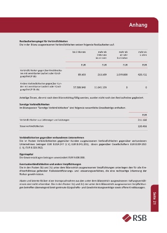 Anteilige Zinsen, die erst nach dem Bilanzstichtag fällig werden, wurden nicht nach den Restlaufzeiten gegliedert.