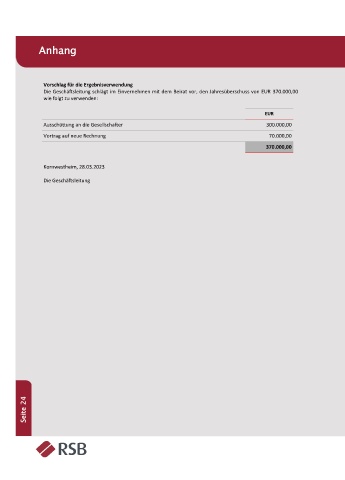 Die Geschäftsleitung schlägt im Einvernehmen mit dem Beirat vor, den Jahresüberschuss von EUR 370.000,00